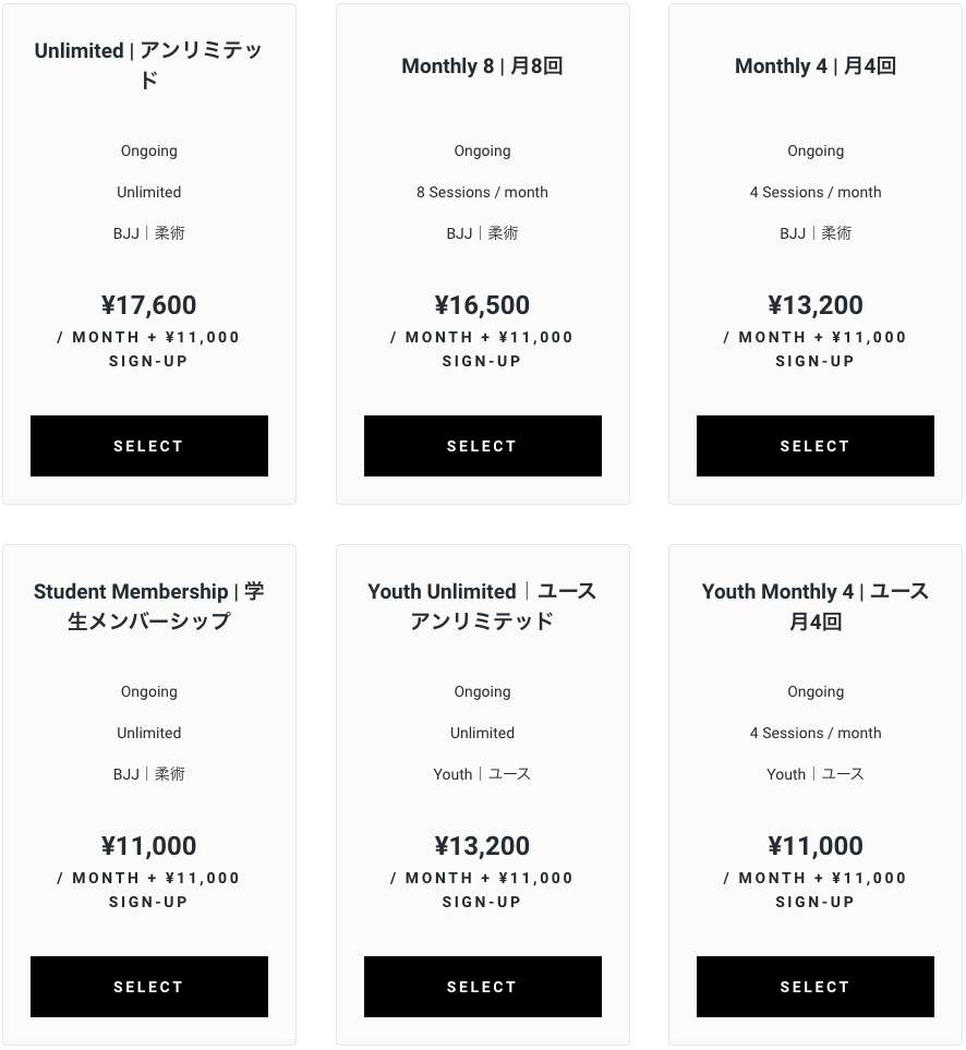| 月会費 | アンリミテッド17,600円/月8回16,500円/月4回13,200円/ユースアンリミテッド13,200円/学生メンバーシップ・ユース月4回11,000円 |